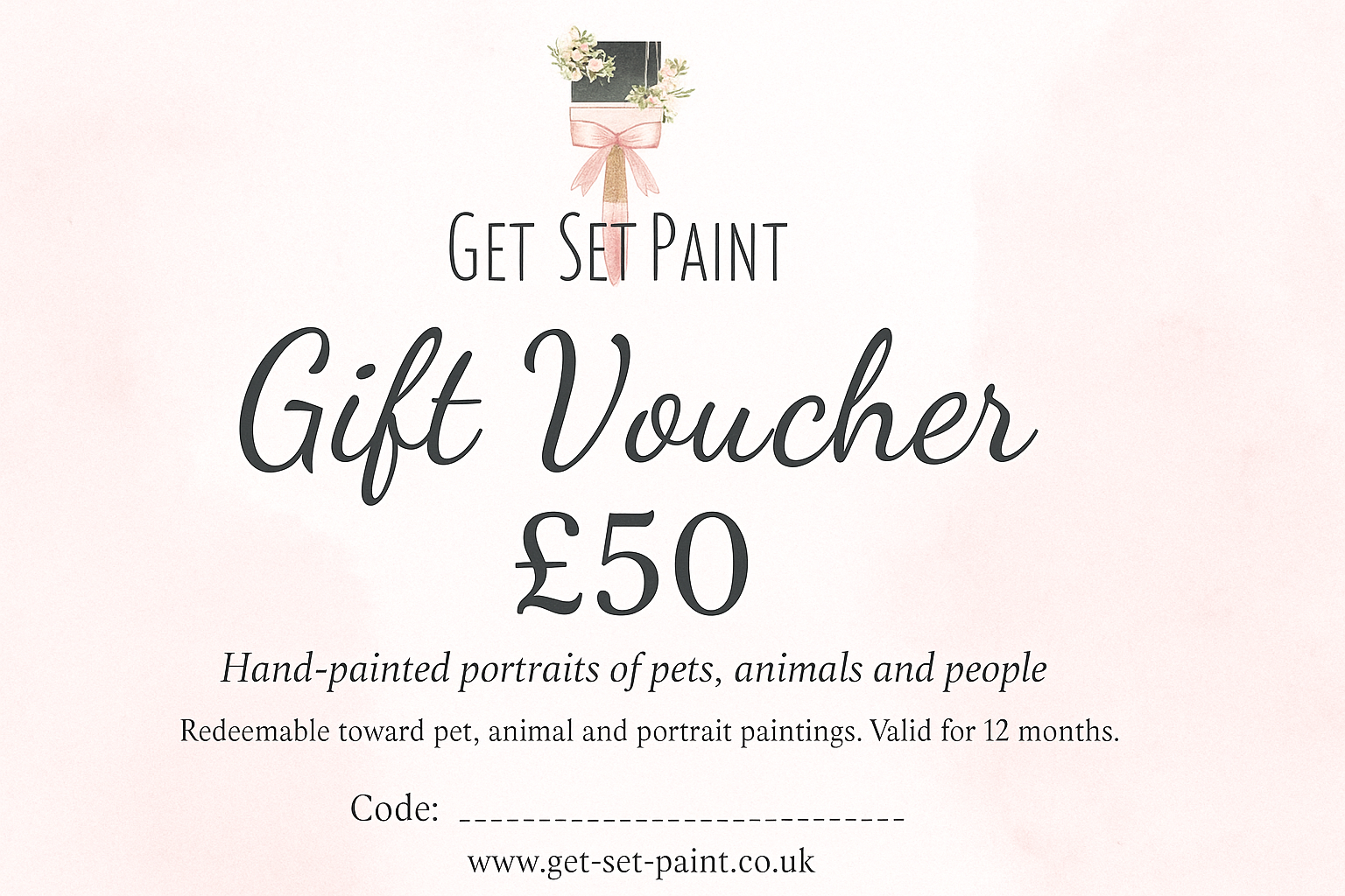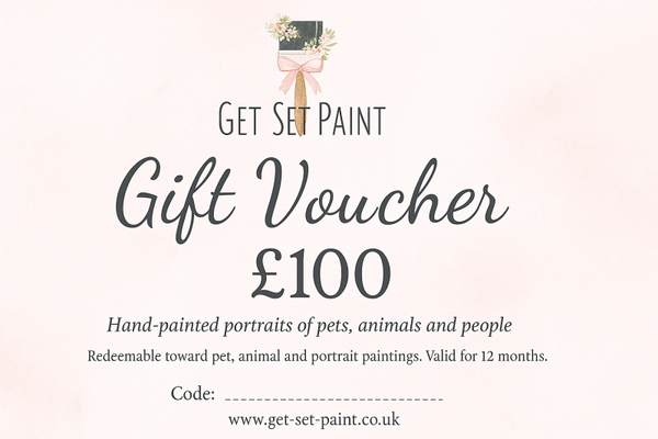 Give the gift of art with a Get Set Paint Gift Voucher — perfect for anyone who adores their pets, loves beautiful portraits, or simply appreciates something truly personal.